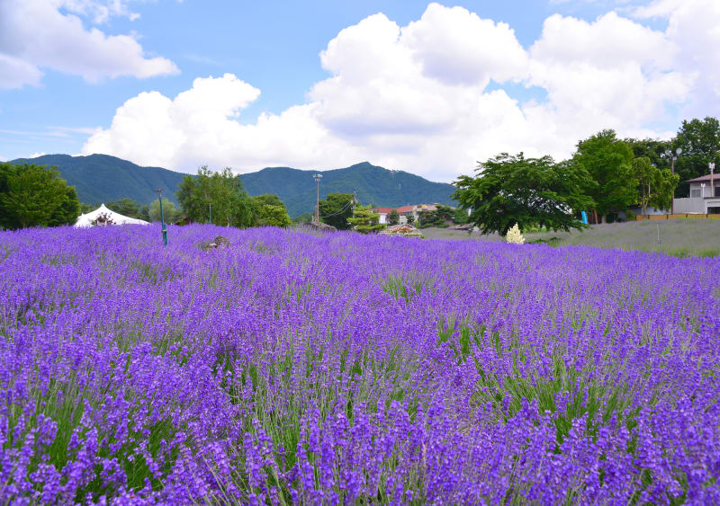 6月~7月にかけて行われる「河口湖ハーブフェスティバル」のメイン会場にもなっており、辺り一面を覆い尽くすラベンダーが風に揺れ動く姿は絶景です。