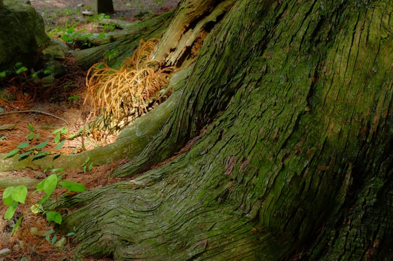 精進湖からすぐの場所にある『精進湖諏訪神社』では、国の天然記念物にも指定されている「精進湖大杉」を見ることも。樹齢はなんと約1,200年以上。高さ約40m、幹の太さ約13mを超える巨木の姿に圧倒されます。
