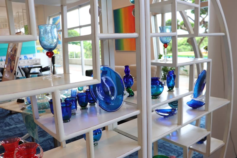 吹きガラス体験をはじめ、アクセサリーやフォトフレーム作りなどの体験教室もたくさん。海のような透明感ある青色や、サンセットを思わせる輝くオレンジ色、琉球グラスの沖縄らしい色合いは、旅の景色を思い出させてくれますよ。