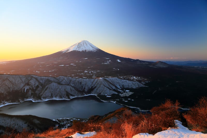 富士五湖のなかで最も面積が広い湖『山中湖』。富士山の山頂に太陽が重なる「ダイヤモンド富士」が見えることでも有名です。周辺には『花の都公園』なども整備されており、のんびりと過ごすことも。富士山と花のコラボレーションも見ることができ、四季折々の景色が楽しめます。