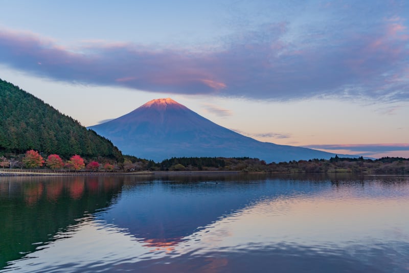 朝霧高原の一角には、遊歩道が整備されている『田貫湖』もあり、ゆっくりと散策を楽しむことも。富士山頂から朝日が昇る「ダイヤモンド富士」が見られることでも有名です。