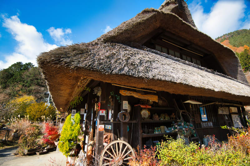 周囲の自然と茅葺き屋根との景色は、ほかではなかなか見られない貴重な景色。郷土料理や練り香づくりなどの体験イベントも行われているので、周囲を散策しながら一緒に楽しんでみて。