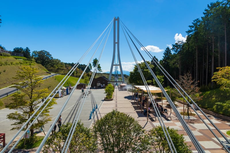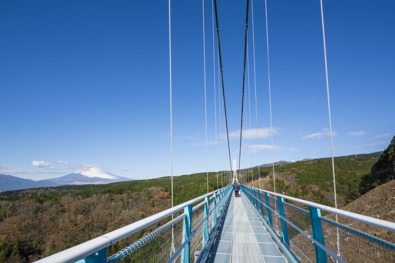 まるで空中散歩をしているかのような気分が味わえる高さ約70mの吊橋からは、大迫力の富士山だけでなく、駿河湾、伊豆の山並みなども見渡せます。