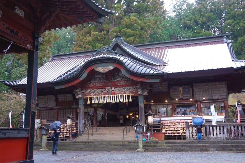 車で約6分ほど移動して、まずは『北口本宮冨士浅間神社』へ。境内には樹齢数百年を超える木々が並んでおり、自然からも長い歴史を感じられる神社。