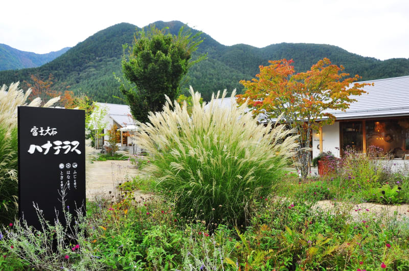 大石公園のすぐ隣にはカフェやショップが並ぶ『富士大石ハナテラス』も。お土産選びやコーヒー休憩もかねて立ち寄ってみて。