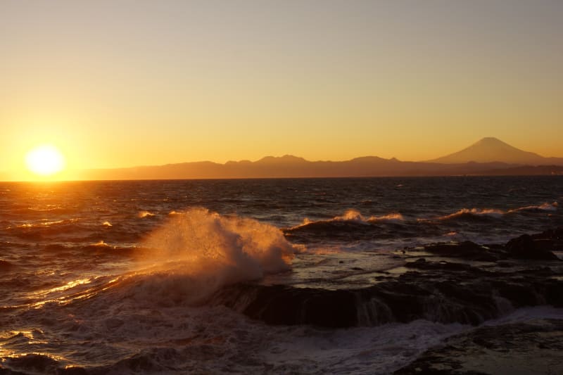 「かながわの景勝50選」にも選ばれるほどの美しい夕景スポットとして有名。岩場に打ち寄せる波の音を聞きながら、地平線に沈んでいく夕日を眺めてみて。天気が良ければ相模湾の向こうに富士山も見えるかも!