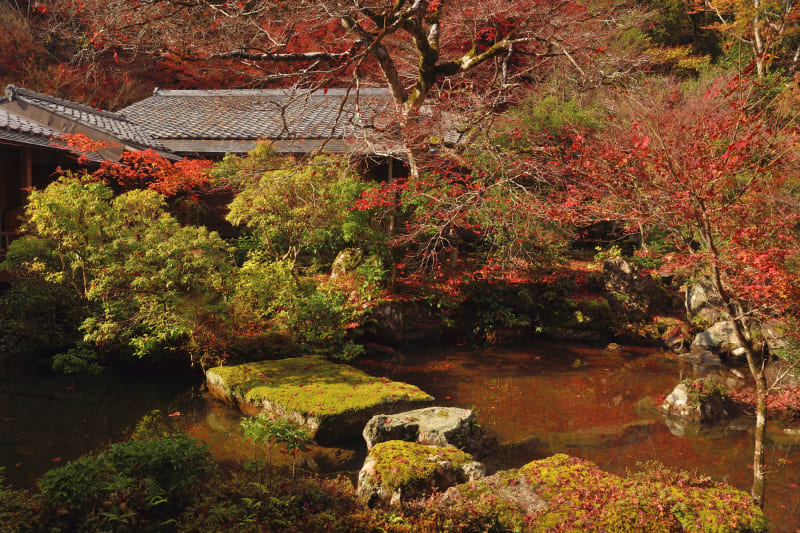 境内には、裏山を背にする「池泉庭園」と、比叡の山並みを借景とする「石庭」の趣の異なる2つの庭園があり、どちらも見逃せない注目ポイント。