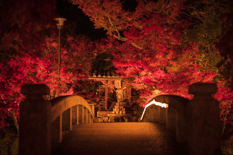 秋の風物詩といえば紅葉。緑の青もみじから燃えるような赤色に移り行く様子は、秋の訪れを感じさせる美しい景色です。昼間の鮮やかな紅葉も十分美しいですが、夜のライトに照らされた妖艶な紅葉も素敵ですね。