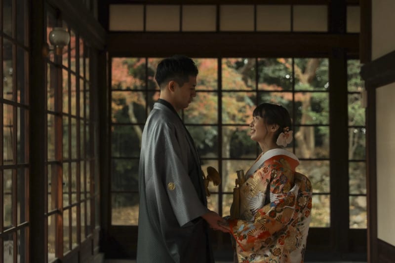 ふたりで、夜間拝観ならではの秋の世界を楽しんでみて。