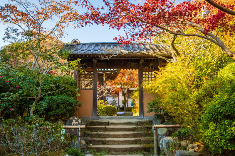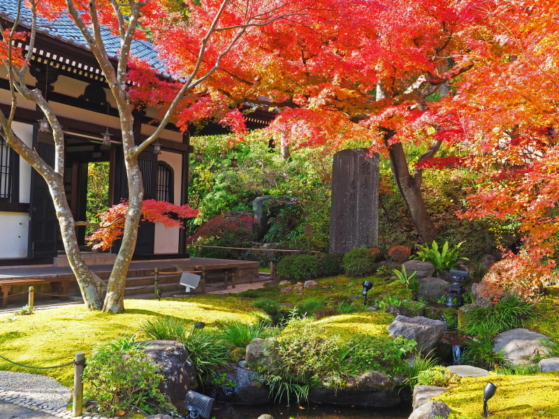 梅雨時期の愛らしいあじさいや、夏のさわやかな新緑も素晴らしいですが、秋のあたたかみある紅葉も、ほかの季節では味わえない魅力が詰まっています。JR北鎌倉駅より徒歩10分とアクセスがよいのもポイント♪