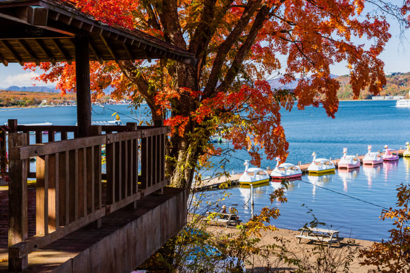 青く壮大な湖と、秋が深まるごとに赤や黄色に染まる山々、三湖台でしか見られない景色を写真に収めておきましょう!