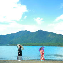 富士五湖のひとつ『本栖湖(もとすこ)』。実は千円札に描かれている富士山の風景は、本栖湖がモデルになっており、写真家・岡田紅陽氏が『中ノ倉峠』より撮影したもの。