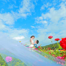 一歩下がって眺めれば、真っ赤な絨毯の上に、富士山がたたずんでいるようにも見えますよ。