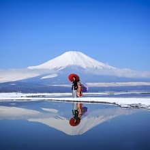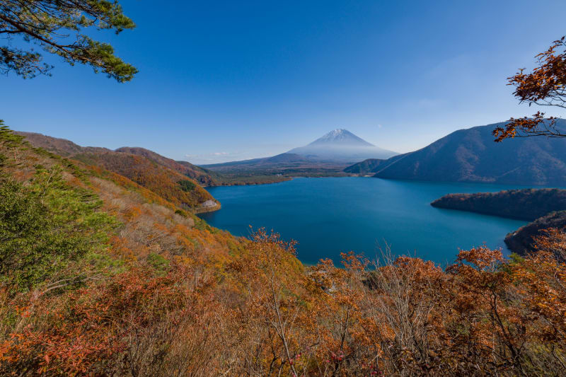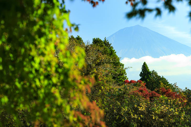秋には、富士山に彩りを添えるかのように、周囲の山々が鮮やかな紅葉に色づきます。圧巻の風景をぜひ写真に収めてみて。