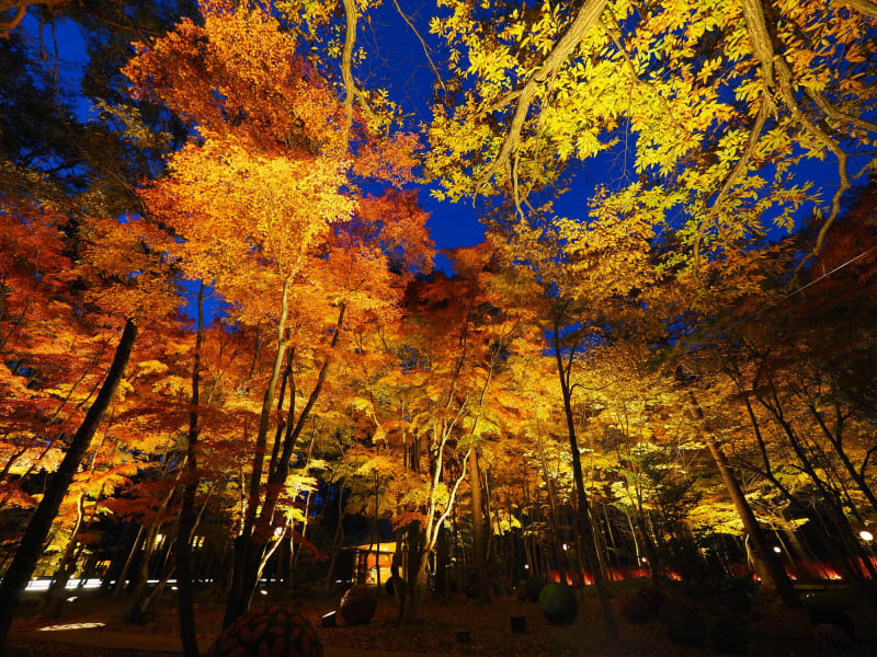 毎年10月から11月頃にはライトアップイベントも開催され、あでやかに輝く幻想的な紅葉を楽しむことも。キラキラと輝く景色のなかをふたりで歩けば、忘れられない素敵な思い出になること間違いなし!