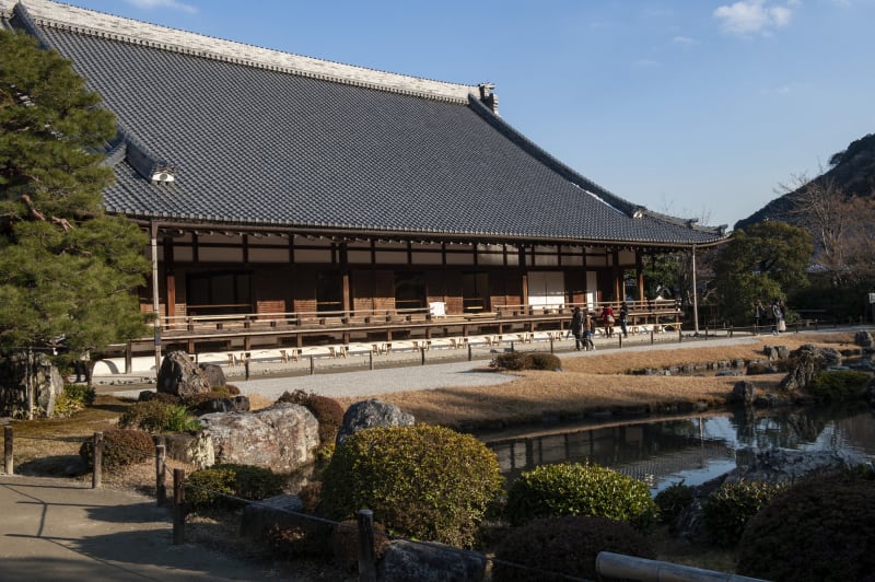 「京都五山」の1位を誇り、後醍醐天皇の菩提を弔うために創建された臨済宗の禅刹です。特別名勝に数えられる日本最初の庭園や、迫力ある龍の画が描かれた法堂で有名。また境内にはしだれ桜や生い茂る緑など、その季節ならではの風景も見ものです。