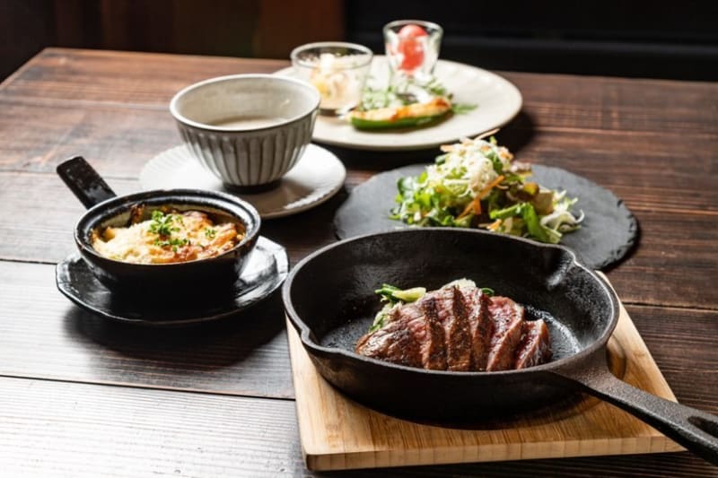 そのほか唐揚げやハンバーグなど、ステーキ以外のメニューも充実。宇治産の平飼い玉子を使用したオムレツなどもあり、京都食材を心ゆくまで堪能できますよ。
