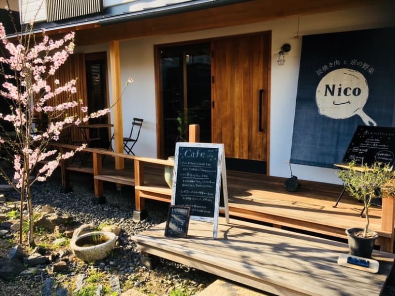 広々としたウッドデッキが印象的な、木のぬくもりあふれるお店『炭焼き肉と京の野菜Nico』。