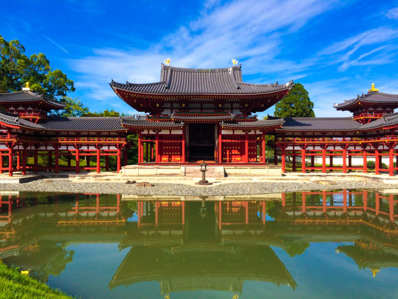 藤原頼道の手で創建された寺院で、約1,000年の歴史を受け継ぐ世界文化遺産です。境内の建物や彫刻、納められている絵画などから平安当時の面影をうかがえます。