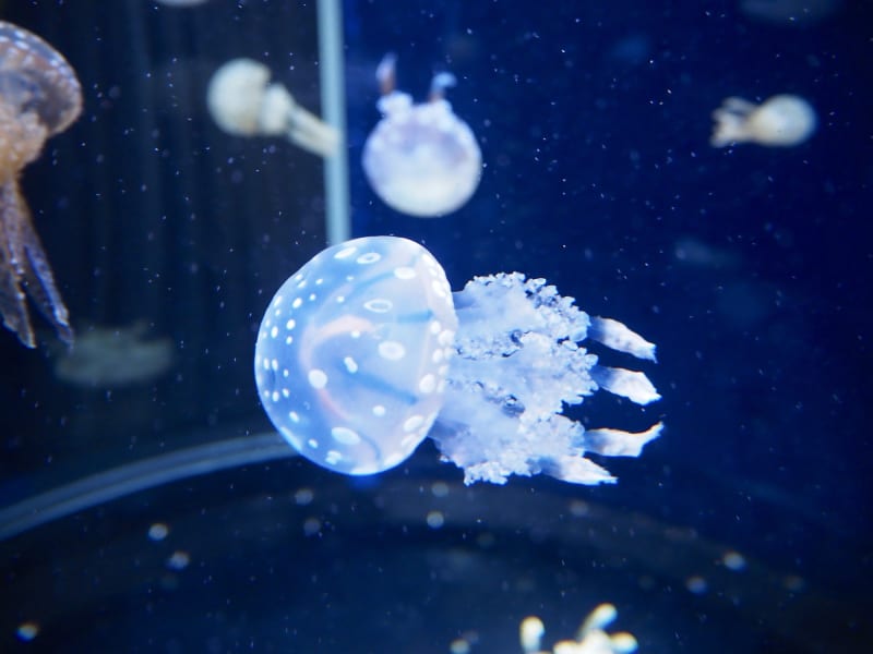 また新江ノ島水族館では、クラゲの飼育や研究に力を入れており、クラゲの世界をテーマにしたプロジェクションマッピングなど、ほかでは見られないイベントや展示も行なわれています。幻想的な世界観に思わずシャッターをきる手も止まらない!