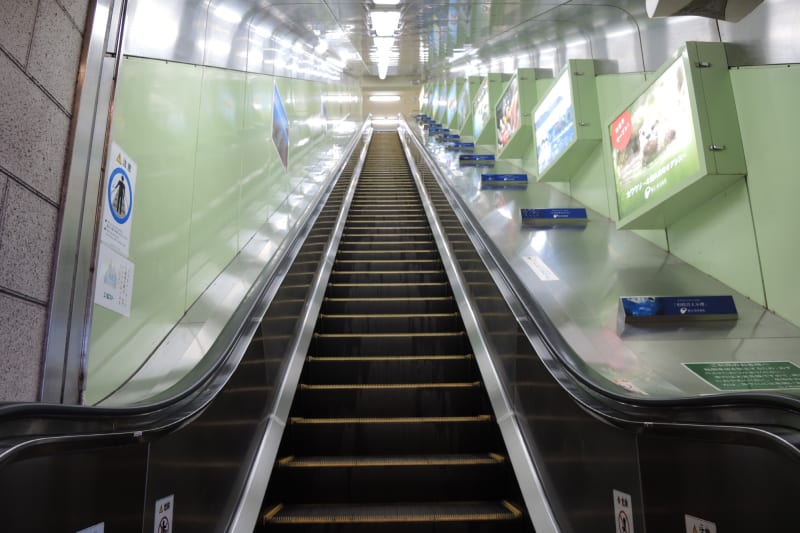 大きな水槽を中心にぐるっとまわりながら降っていく作りになっており、海の中へ潜っていくような感覚を楽しめますよ!