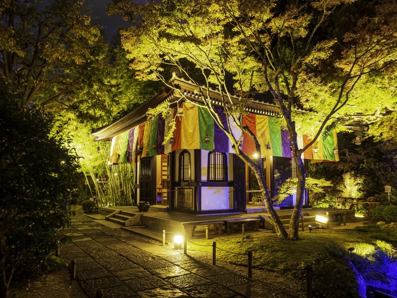 美しく色づいた木々が、幻想的な風景に移り行く様子はとてもきらびやかです。ほかの紅葉スポットを訪れたあとに、日が沈んでから訪れるのがおすすめ。