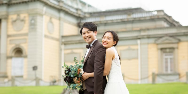 重厚感のあるレトロな建物の前でドレス&タキシードをまとえば、一気に洗練された雰囲気に。まるで海外で撮影しているかのようなロマンチックな写真を残せますよ♪