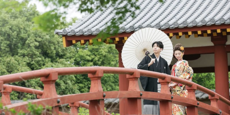 現在、フォトウェディングがお得に撮影できるキャンペーン「選べる和洋セットプラン」を実施中です。和装と洋装、それぞれの撮影を楽しみながら、奈良の雰囲気をおもいっきり満喫しましょう!