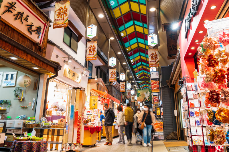 知る人ぞ知る、約400年の歴史を誇る京都の大規模な市場。生鮮保存に最適な降り井戸があったことから魚市場として栄え、現在では京都の食文化を司る「京の台所」としても親しまれています。約390メートル続く長いアーケード街には、飲食店や土産物屋がたくさん!