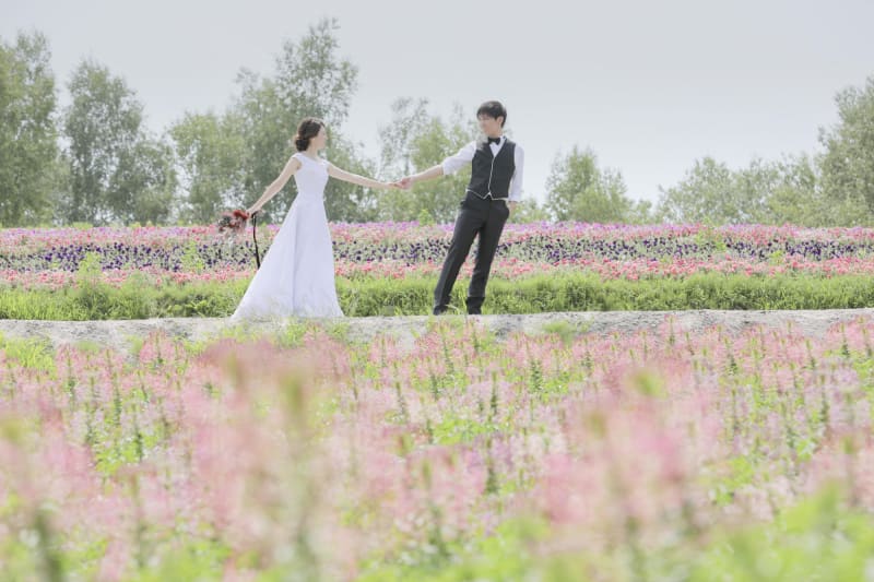 グリーンシーズンと呼ばれる4月下旬から10月下旬には、カラフルなお花畑の中で、フォトウェディングも撮影できますよ。真っ白なふたりの衣装が、華やかな景色に映えること間違いなし!