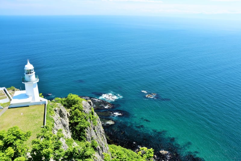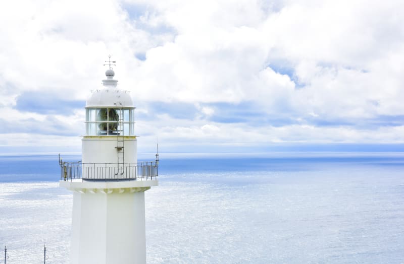 海抜130mの断崖の上にそびえたつ「チキウ岬灯台」。灯台では珍しい、まっしろな姿が特徴です。1920年から現在にいたるまで、約44キロメートル先まで明るく海を照らし続けている歴史ある灯台です。