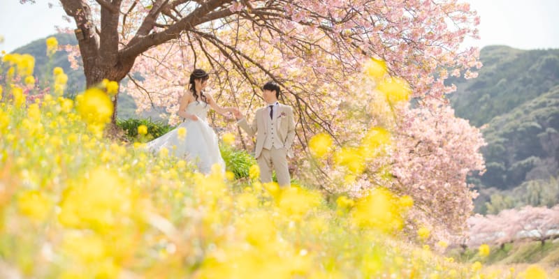 桜景色が好きな方は『河津桜』を写真に入れて撮影するのもおすすめ。首都圏きっての桜の名所で、2月上旬からは毎年約8,000本の桜が咲き乱れます。