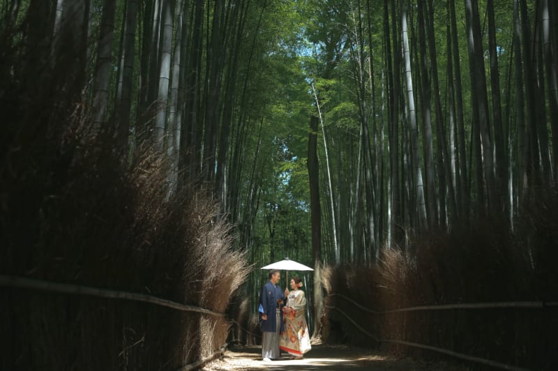 『嵐山』も和装撮影では欠かせないスポット。四季折々に色づく山と、その麓に流れる川、さらに幻想的な竹林など、あらゆる風情が美しい景色を織りなすエリアです。