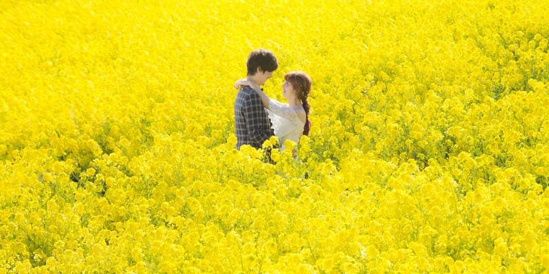 お花に囲まれたフォトウェディングを撮影できるのが、淡路島の一大スポット『あわじ花さじき』。面積約15ヘクタールほどの広大な敷地に、四季折々の花のじゅうたんが広がります。