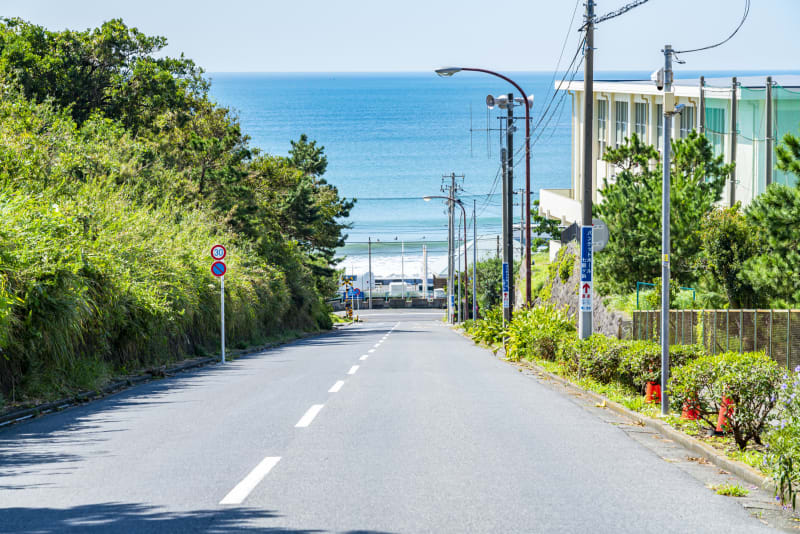 ランチを楽しんだあとは、絶景ビューを眺めに『七高通り』へ。ドラマやミュージックビデオなどの撮影地としても知られている、七里ヶ浜の絶景オーシャンビュースポットです。