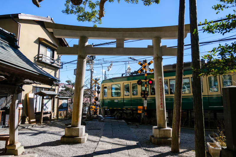鳥居越しに江ノ電が走る風景は、ほかでは見られない景色。フォトスポットして人気なので、ぜひ写真撮影を♪