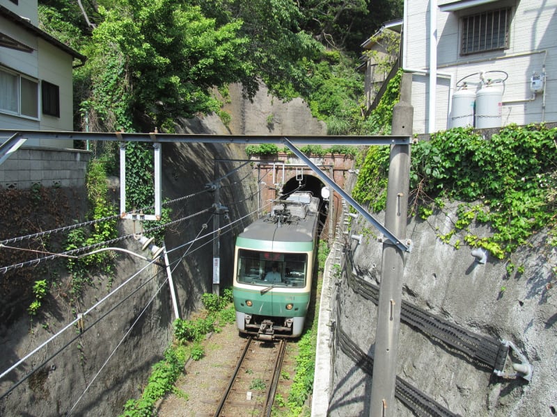 駅から向かうのは、唯一のレンガ造りのトンネル『極楽洞』。極楽寺駅から長谷駅間にあり、建設当時の姿をそのまま留めている全国的にも珍しいトンネルです。
