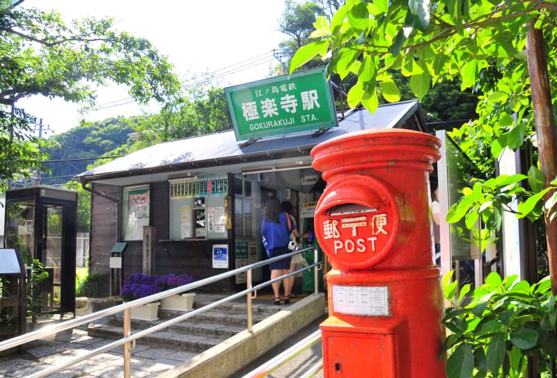 極楽寺駅は「関東の駅100選」に選ばれている、レトロな雰囲気ある可愛らしい駅です。昔ながらの赤いポストと一緒に駅舎の写真を撮るのがおすすめ♪