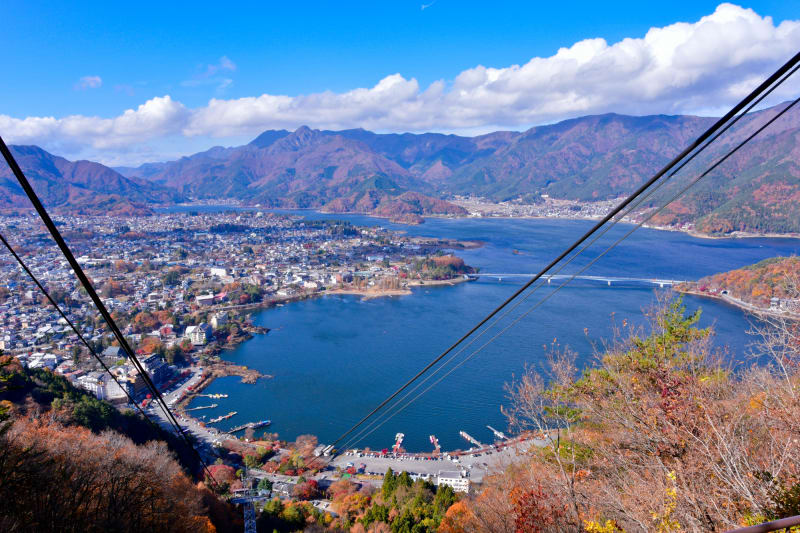 向かうのは『河口湖・富士山パノラマロープウェイ』。ロープウェイに乗って、日本昔話「カチカチ山」の舞台になった天上山まで登っていきます。