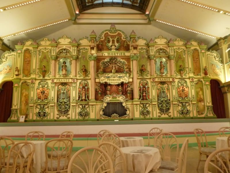 舞踏会会場のような豪華絢爛なホールでは、約100年前に作られた世界最大級のダンスオルガンの演奏を楽しむことも。
