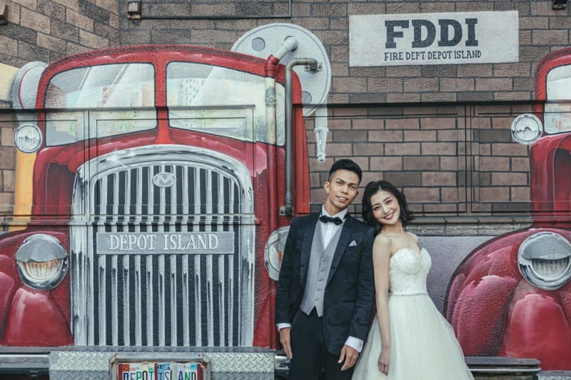 洋装に身を包み、テラス席で談笑しながら撮影するのもスマートで素敵。カラフルな建物と異国情緒たっぷりの街並みが、おふたりをロマンチックに引き立てくれますよ♪