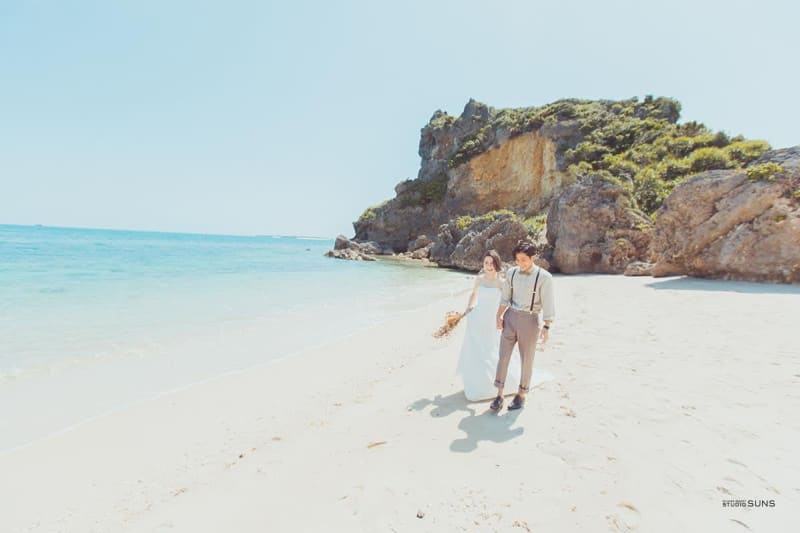 静かな雰囲気でゆったり撮影したい方は、南城市にある『百名ビーチ』がおすすめ。琉球を創成した女神・アマミキヨが降り立ったといわれている場所で、パワースポットとしても有名です。
