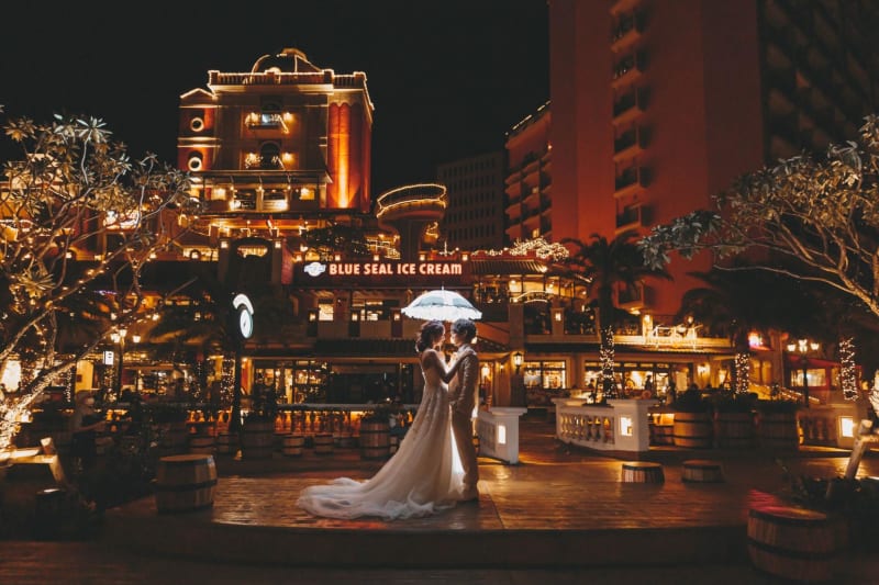 また、アメリカンビレッジでは夕方頃から撮影するのもおすすめ。辺りがライトアップされる夜には、よりムードのある写真を撮影できます。