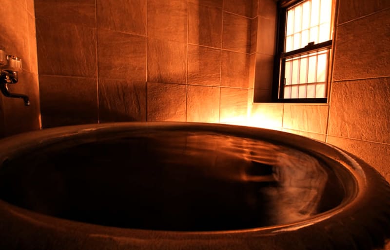 お風呂には、遠赤外線効果のある信楽焼の湯船・オリジナルの薬湯を使用! 体の芯から温まる癒しのバスタイムを過ごせますよ♪