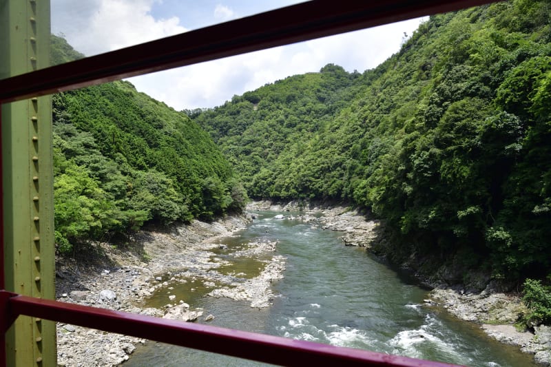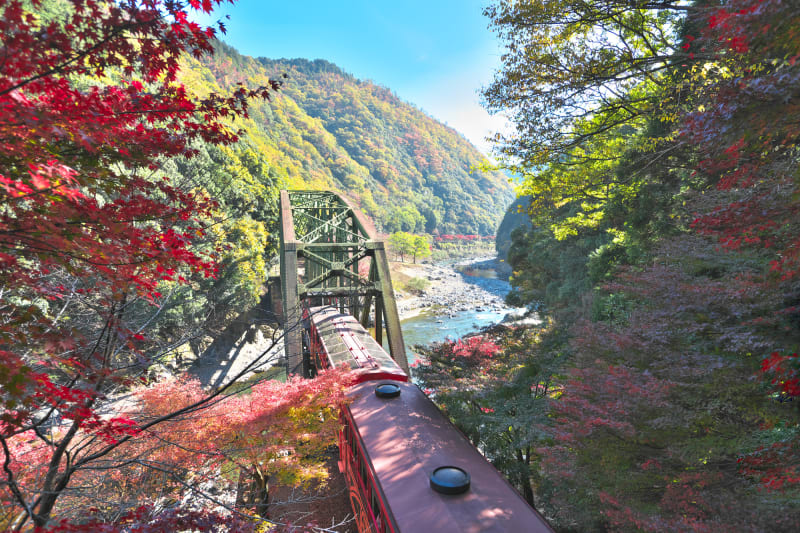 保津峡に沿って列車が走るため、春の桜から冬の雪景色まで、四季折々の美しい景色が楽しめます。
