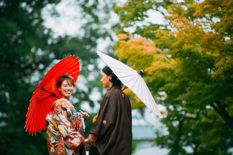 広葉樹に囲まれた境内には小川が流れ、清々しい空気が流れており、ふたりでのんびりと過ごすのにもぴったり。