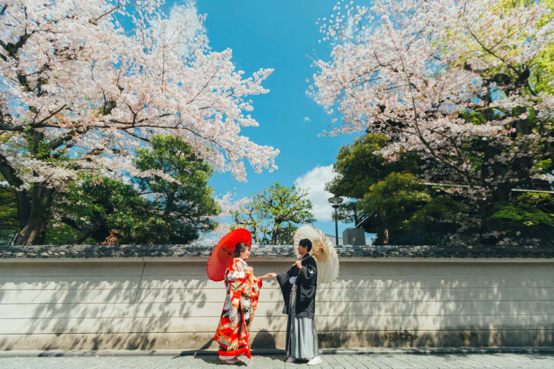 現在、フォトウェディングがお得に撮影できるキャンペーン「選べる和洋セットプラン」を実施中です。和装と洋装、それぞれの撮影を楽しみながら、京都観光をおもいっきり満喫しましょう!