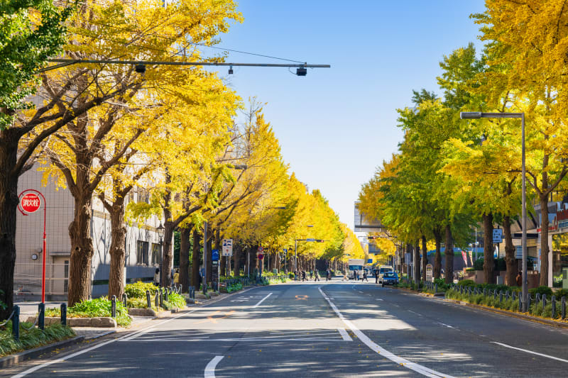 山下公園へと続く通りには、黄金色に輝くイチョウが並んでいるので、写真撮影をしながら散策を楽しみましょう。