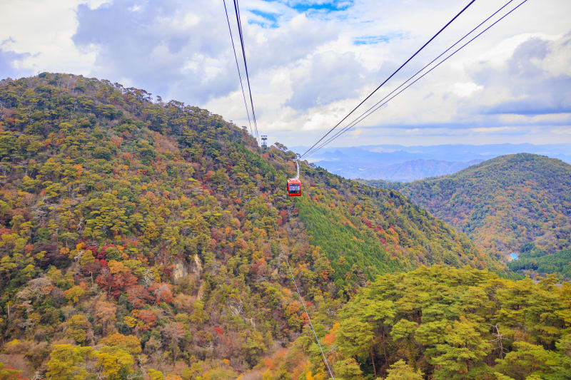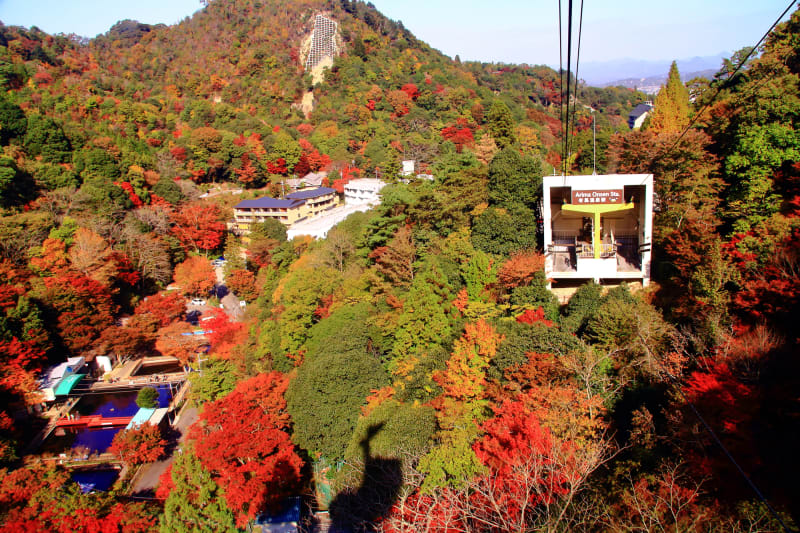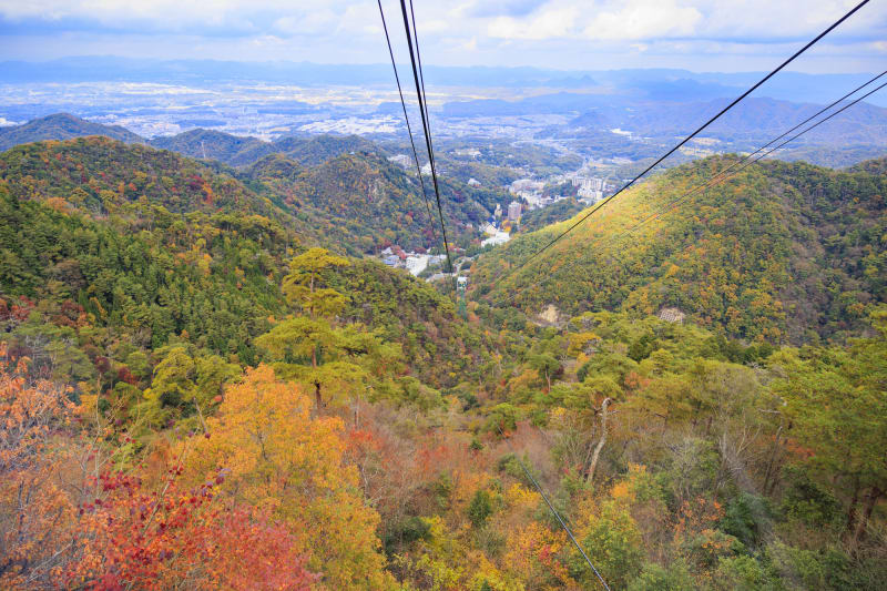 有馬温泉駅と六甲山頂駅の間を片道約12分で運行する『六甲有馬ロープウェー』。六甲山の美しい紅葉を山上からゆったりと眺められます。