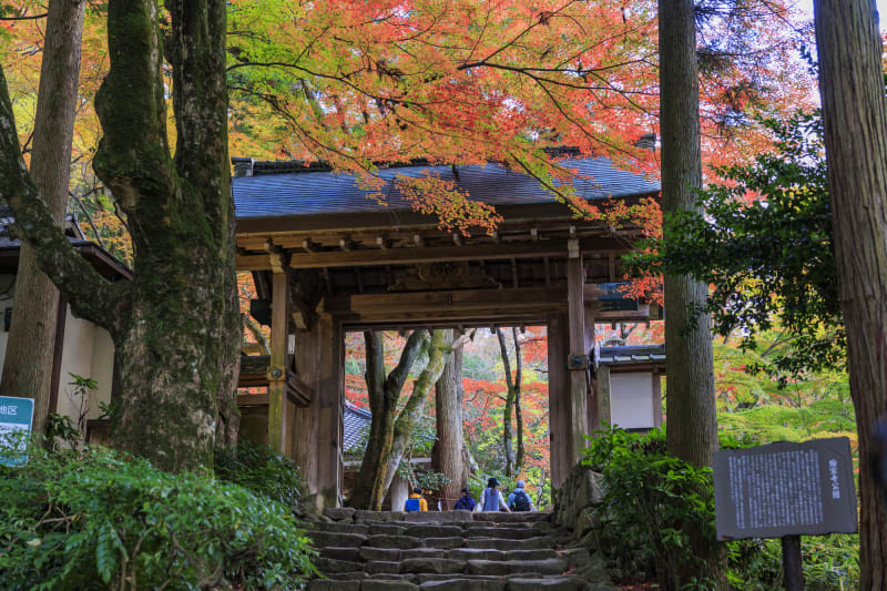 例年の紅葉の見頃は11月の上旬から下旬にかけてまで。紅葉シーズンになると、豊臣秀吉が「いくら見ても飽きない」とまで称賛した約2,500本のカエデが真っ赤に色づきます。